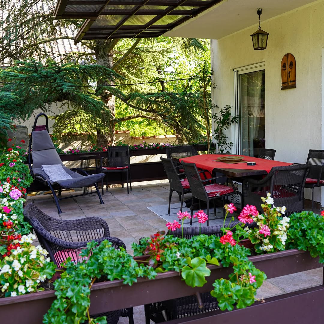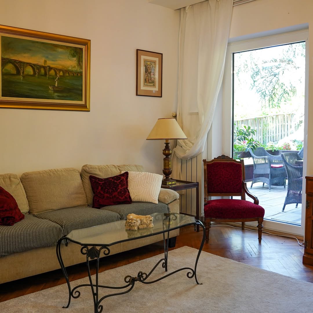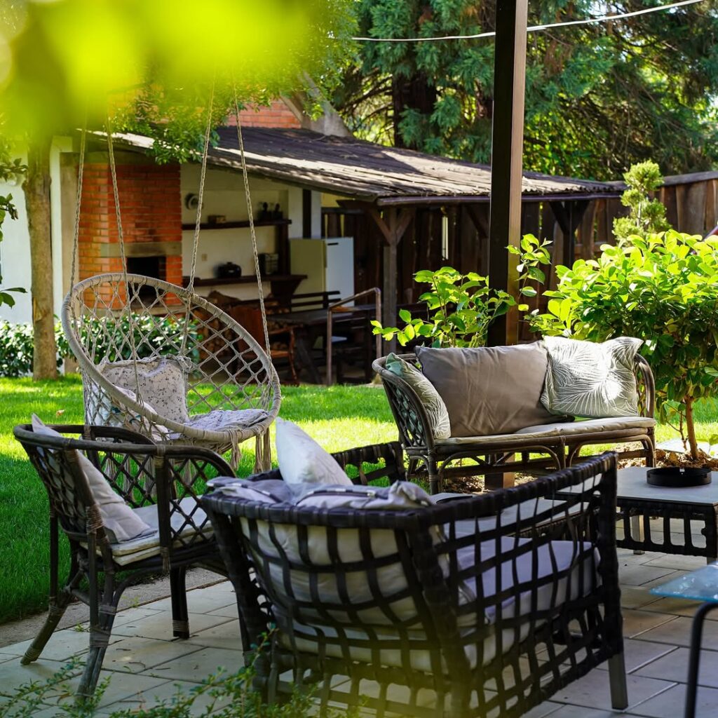 Velika bašta okružena brezama i četinarima za potpuni mir i tišinu