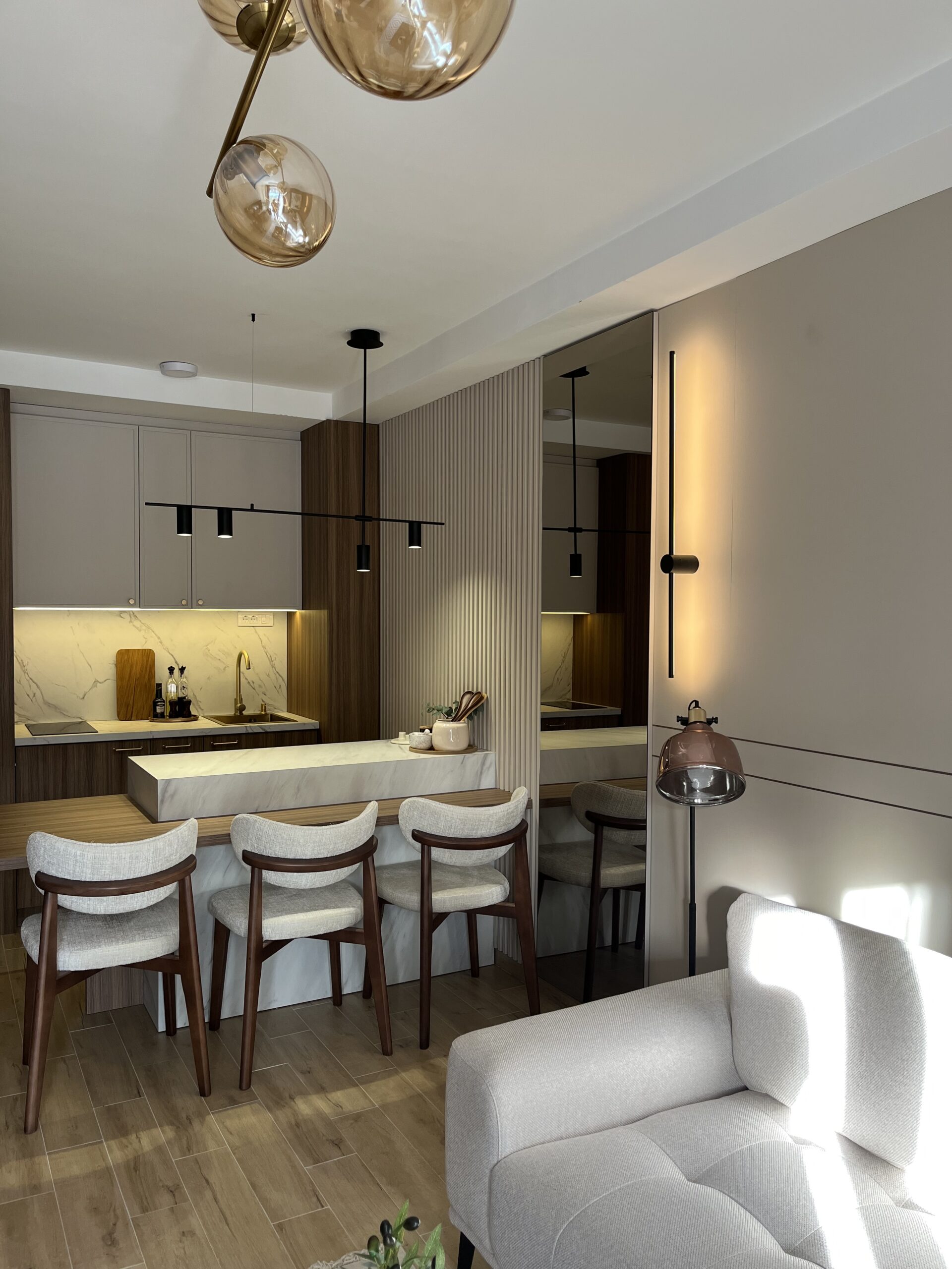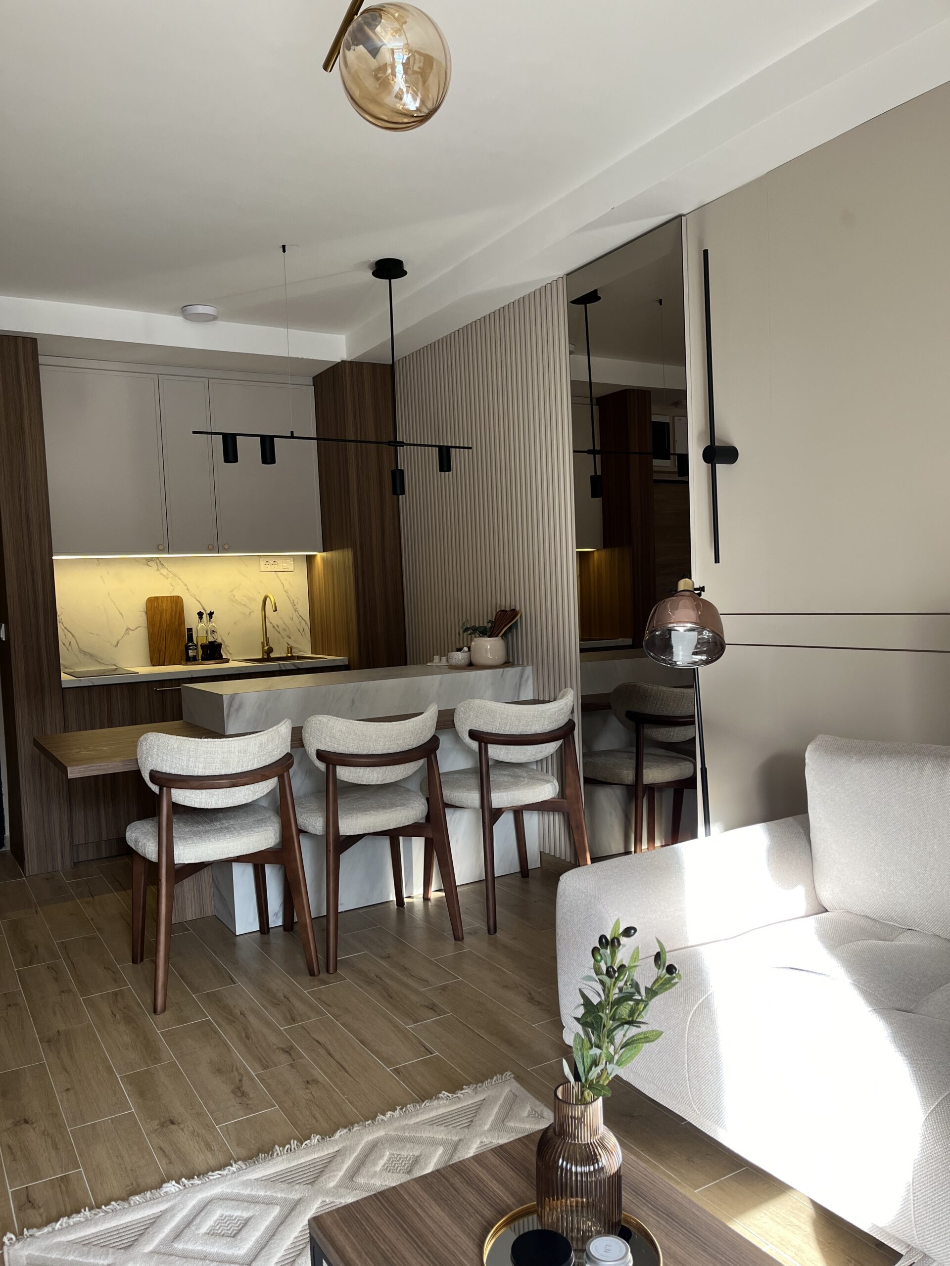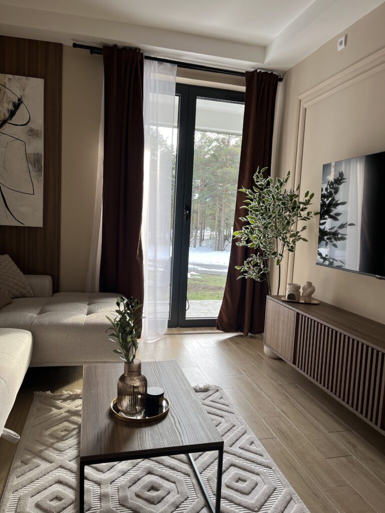 Apartman ima odvojenu spavaću sobu sa bračnim krevetom 160x200cm, a u dnevnom boravku ugaonu garnituru na razvlačenje.