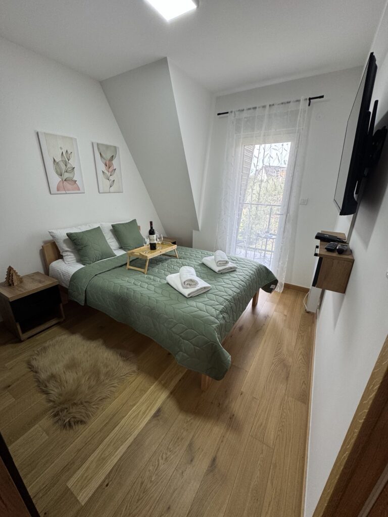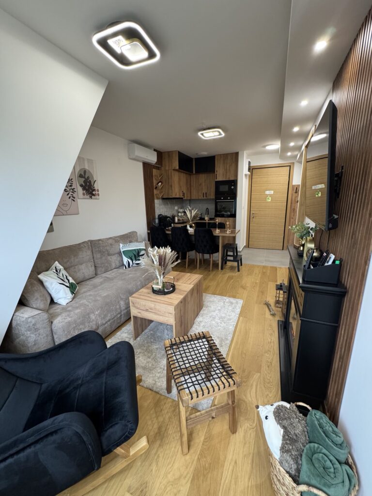 Apartman se nalazi u novoizgradjenom objektu i pruza udoban smestaj za miran i prijatan boravak. Gostima je na raspolaganju odvojena spavaca soba, prostrana dnevna soba sa komplet opremljenom kuhinjom, kao i terasa idealna za opustanje. Gostima je obezbedjen brz optički internet i veliki broj TV kanala. Ispred objekta je parking koji je pokriven video nadzorom.
