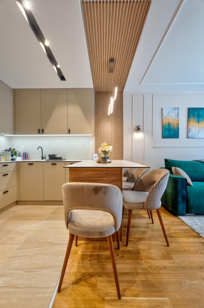 Moderan i lepo dizajniran apartman za 4 osobe, udaljen samo 350m hoda od centra Zlatibora. Smešten u mirnijem delu, okružen drvećem i prirodom, pruža savršen balans između odmora i blizine svih glavnih dešavanja. Apartman je svetao, funkcionalno opremljen i pažljivo uređen kako bi gostima pružio maksimalnu udobnost tokom boravka. Idealan je za porodice, parove ili manje društvo koje želi mir, a da im centar, kao i sami sadržaji u centru budu na samo nekolikko minuta lagane šetnje.