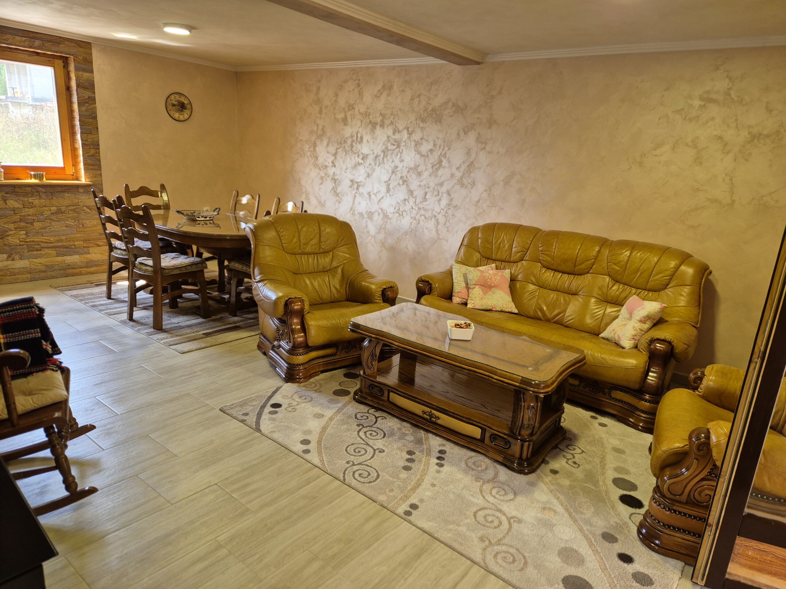 Vila Dimitrijević pruža sve što je potrebno za bezbrižan odmor. U prizemlju se nalazi prostrani dnevni boravak sa kaminom na drva, trpezarija i potpuno opremljena kuhinja, kao i kupatilo. Poseban užitak predstavlja SPA centar sa đakuzijem i saunom, savršen za opuštanje nakon dana provedenog u prirodi.