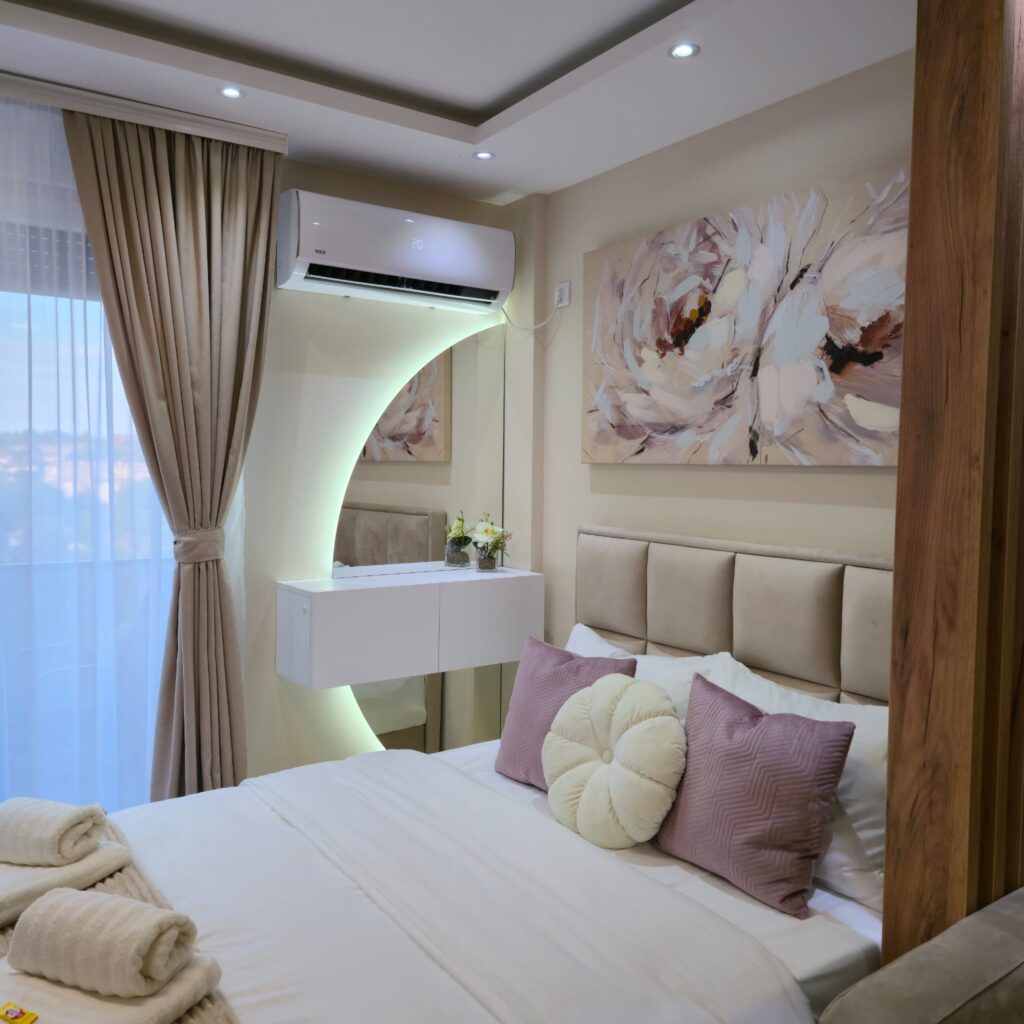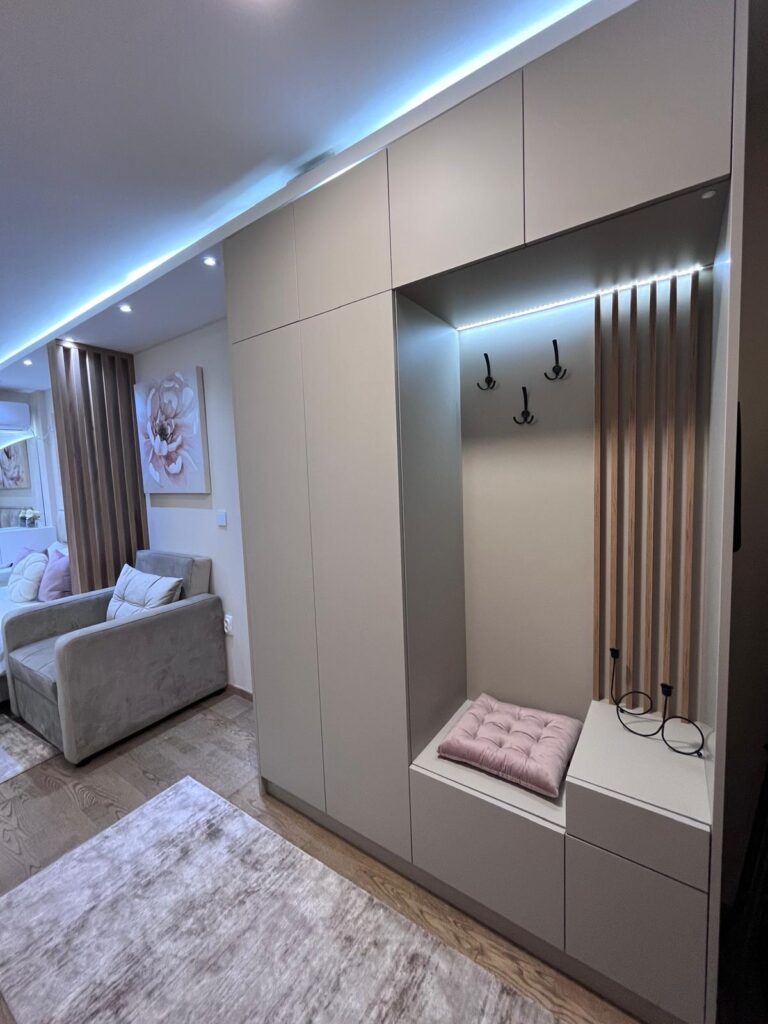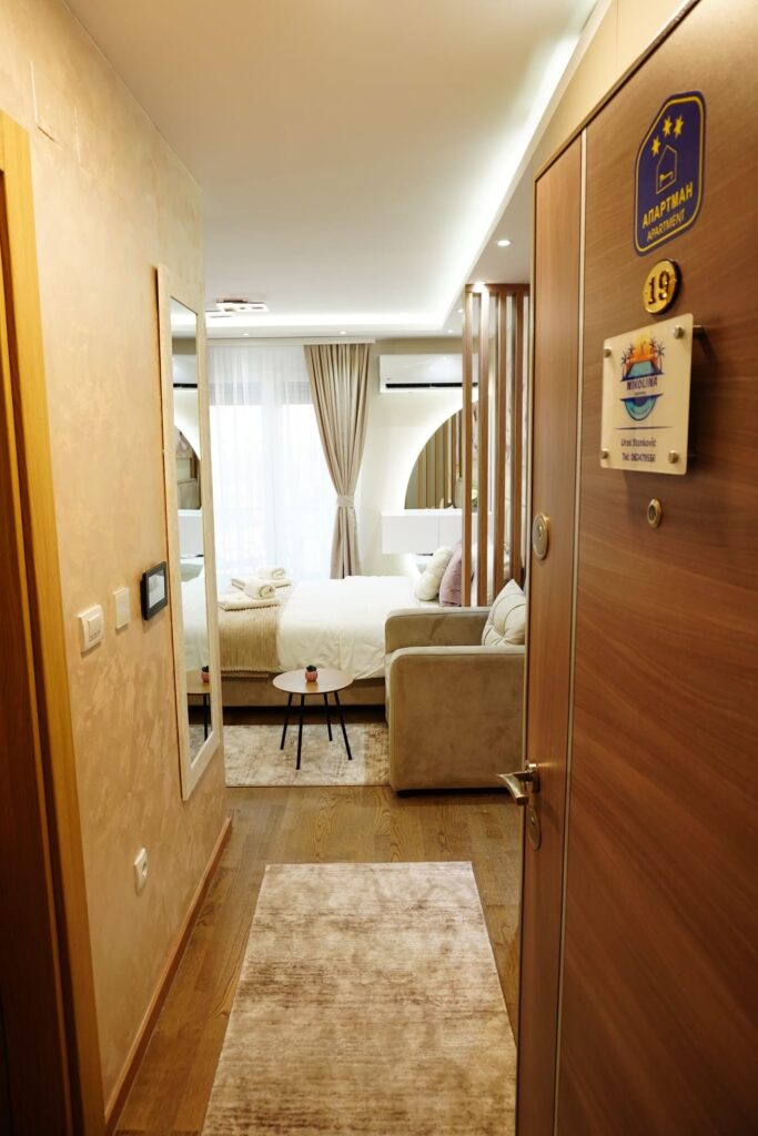 Zadovoljstvo nam je da Vam predstavimo naš potpuno nov, moderno opremljen apartman smešten u okviru kompleksa Panorama, u Ostroškoj ulici, na svega par minuta hoda od glavnog šetališta i 200 metara od Panoramskog točka. Apartman se nalazi na trećem spratu zgrade koja poseduje lift.