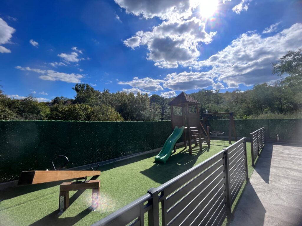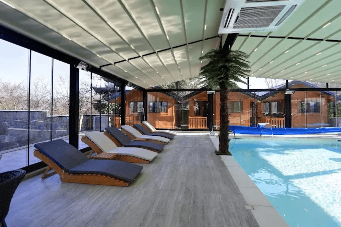 U dvorištu kompleksa nalazi se bazen koji je na raspolaganju gostima apartmana potpuno besplatno i neograničeno, tokom cele godine bez obzira na vremenske uslove. Bazen je leti otvoren, a tokom zimskih meseci zatvoren i grejan. U dvorištu se nalazi i igralište za decu, restoran, kao i besplatan parking.
